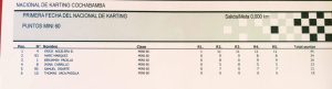 Carrera nacional de karting en Cochabamba con Lucas Careaga una bala acelerando ganándole a Poma y Abel Iriarte en una fecha peculiar con debutantes en la principal categoría de este deporte aunque la Clase Sudam como siempre dio buen espectáculo.
