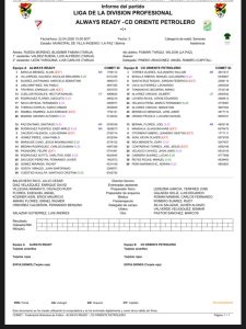 Para colmo de males Oriente Petrolero frente a Always Ready quedó diezmado en cuanto a como defenderse mejor y jugar de contra por la expulsión de Kevin Sony y todo por reaccionar ante juego desleal de Diego Rodríguez siendo que el árbitro vio la falta de Rodríguez pero Sony se abalanzó contra el ex Oriente y vio la roja por antifutbol perjudicando a su equipo.