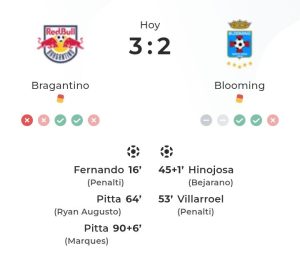 Fue gran partido de Blooming rivalizando con Bragantino por segunda fecha zona de grupos Temporada 2026 porque los celestes cruceños estaban jugando bien pero perdieron 3-2 al final en una noche a bien futbol con Moises Villarroel inspirado.